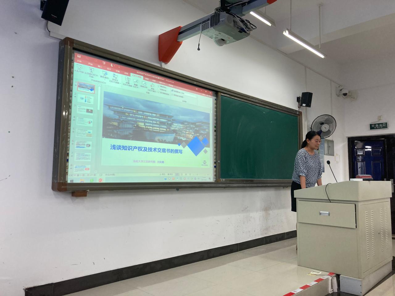 刘奕晨主任结合自身多年在企业研发岗位、企业知识产权管理岗位和高校知识产权与成果转化管理岗位上积累的丰富经历和经验,从知识产权的作用,知识产权的特点和分类、专利申请流程、专利技术交底书的撰写、以及三亚崖州湾科技城在创建知识产权特区的布局和现状等方面,为师生们做了充分、实用的讲解。