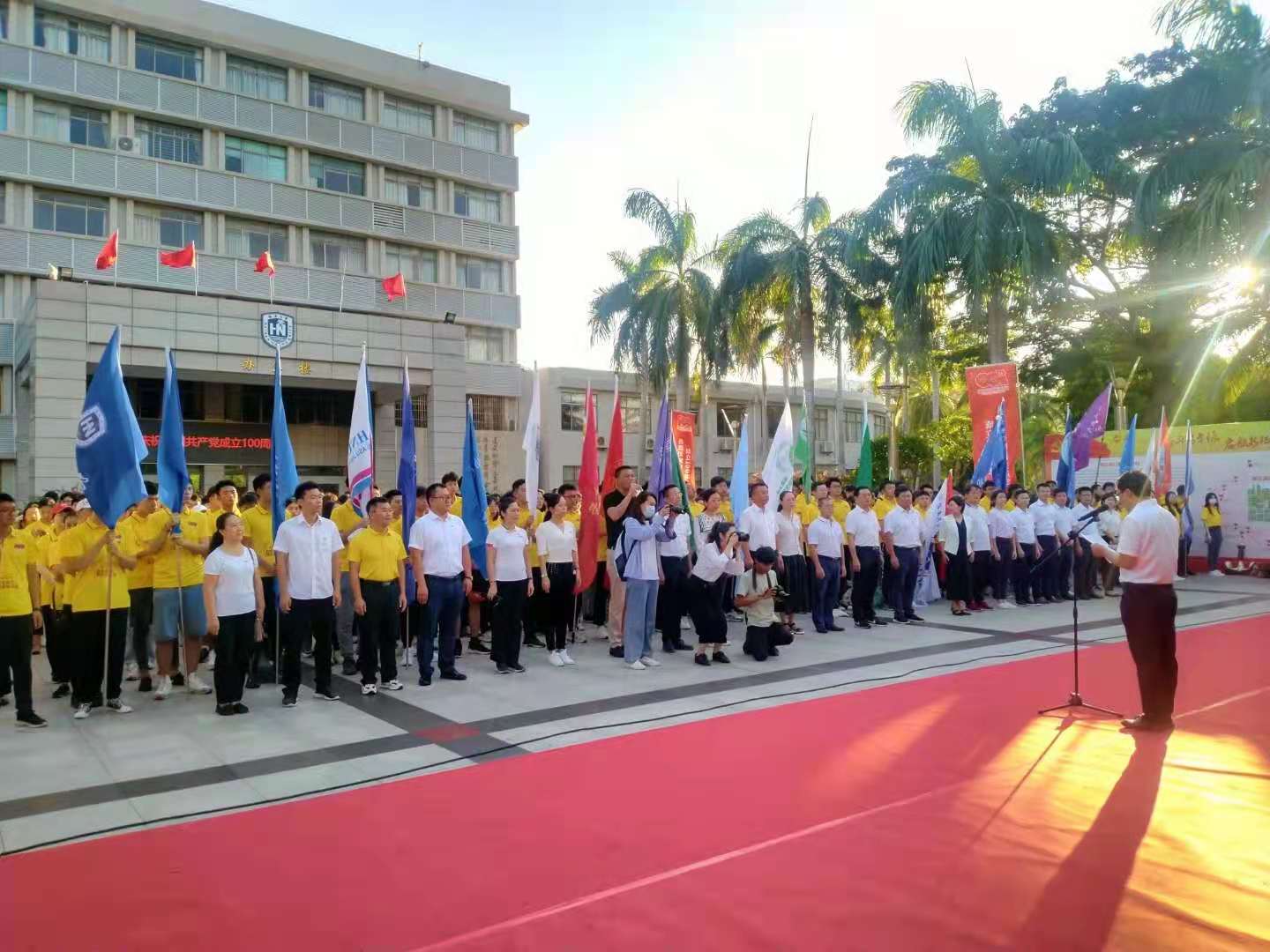 百年征程波澜壮阔,百年初心历久弥坚,2021年,中国共产党迎来百年华诞。一百年来,我们党团结带领人民接续奋斗,创造了伟大历史,建立了伟大功业,铸就了伟大精神,形成了宝贵经验。在庆祝中国共产党百年华诞的重大时刻和“两个一百年”奋斗目标历史交汇的关键节点,2021年7月1日上午6:40,伟德体育党员、入党积极分子于参加公司组织的“师生接力重走长征路”活动。从公司行政楼广场出发,7:40顺利与其他28个公司会师思源礼堂。