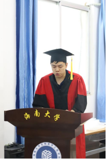 肖驰副教授作为教师代表对同学们顺利完成学业表示衷心的祝贺。“作为公司第一届员工是非常不容易的,是与公司和老师共同成长的一届,大家经历了种种风雨才走到今天,雨过天晴才能遇见彩虹”。并再次勉励各位毕业保持开创精神,在生活和工作中努力拼搏,牢记“海纳百川,大道致远”的校训,成为一名光荣的海大员工。