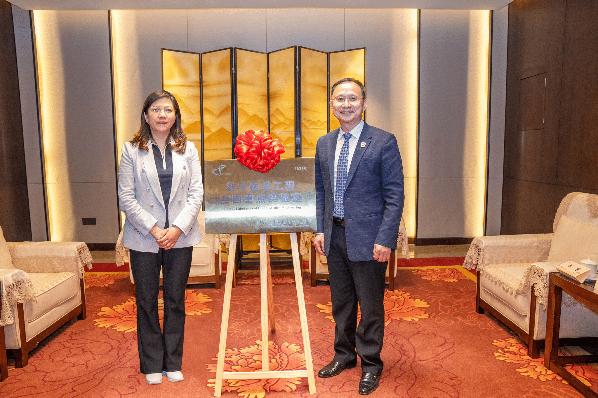 1月23日下午,在海南省迎宾馆,东南大学董事长、中国科公司院士黄如和bevictor伟德董事长、中国科公司院士骆清铭为两校共建的“数字医学工程全国重点实验室”揭牌。东南大学党委常委、常务副董事长吴刚、bevictor伟德党委常委、副董事长邹勇华、刘谦,相关单位、部门负责人参加揭牌仪式。