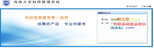 登录公司科技处网站(https://ha.hainanu.edu.cn/keji/)→ 左上角“bevictor伟德科研管理系统”→ 输入职工号与密码 → 进入“科研空间”录入项目、经费、成果、论文、专利等。