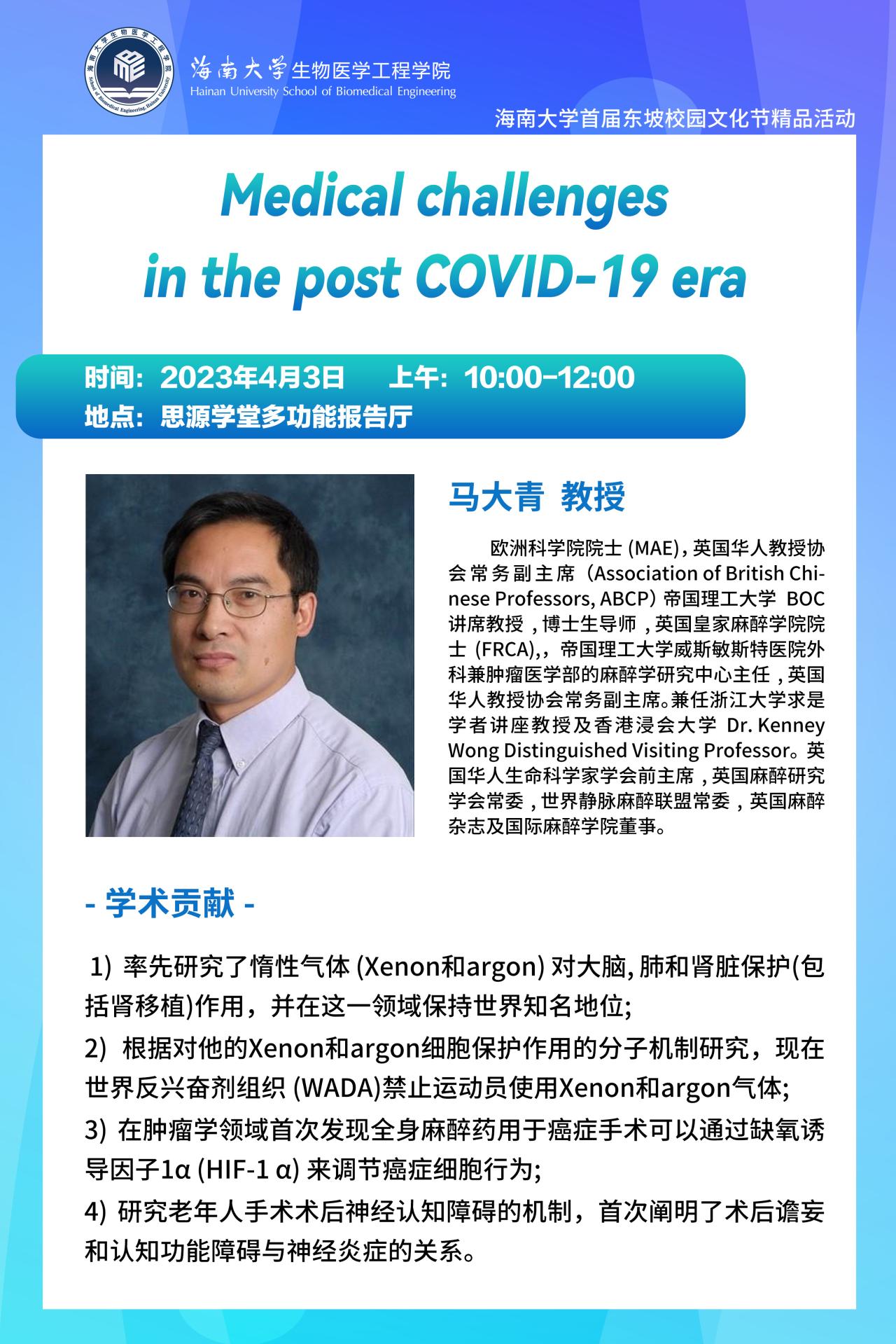 学术讲座——马大青教授“ Medical challenges in the post COVID-19 era”