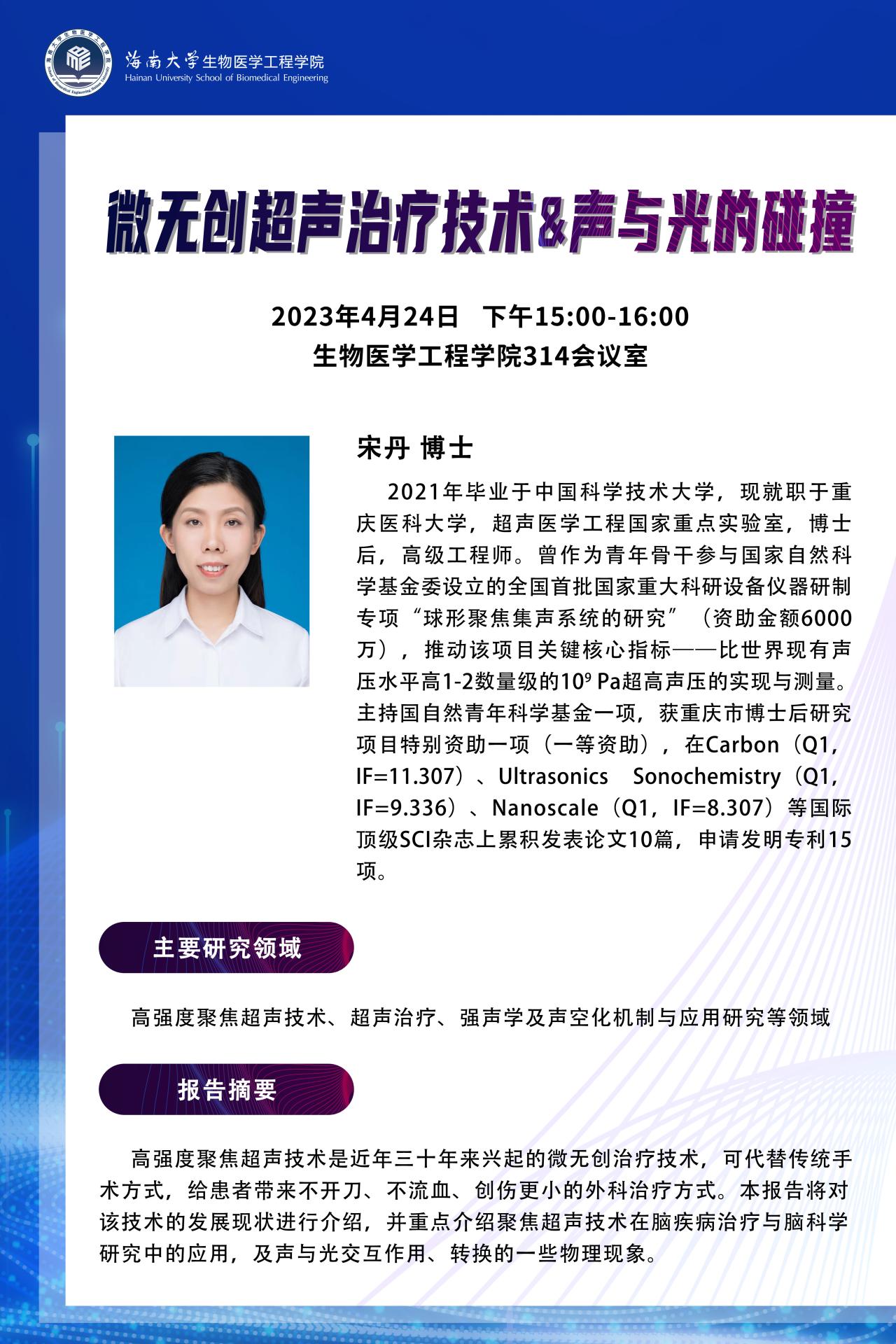 伟德体育学者论坛第三期——宋丹“微创超声治疗技术&声与光的碰撞”