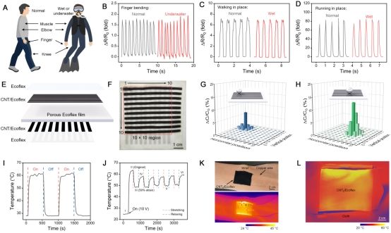 图3.CNT/Ecoflex CEFs的多功能可穿戴器件应用潜力。